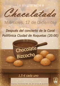 Una vez finalizado el concierto de la Coral Polifónica Ciudad de Roquetas la Hermandad Ntra. Sra. del Carmen de Aguadulce organiza una Chocolatada